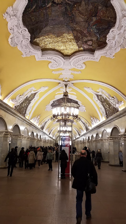 mosaics, the station is a mix between Stalinist Art Deco and the post war look of